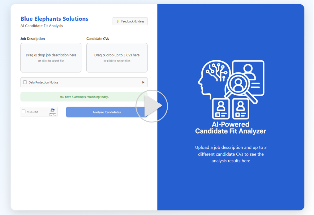 We like to build small internal prototypes to demonstrate specific capabilities of AI in a practical way. One of these is the AI Candidate Fit Analyzer, which we’ve made publicly accessible for Talent Acquisition and HR teams.