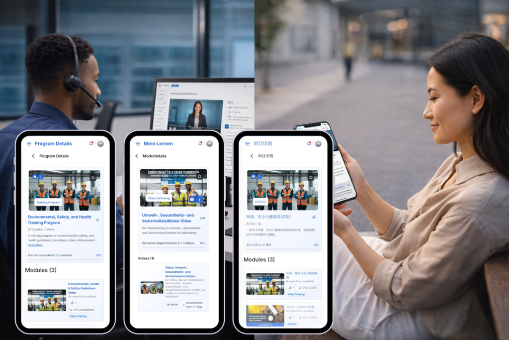 High-quality learning shouldn’t depend on where someone works, what language they speak, or which device they use. STRIVE delivers the same learning experience across desktop and mobile, with automatic translation and flexible formats built in.